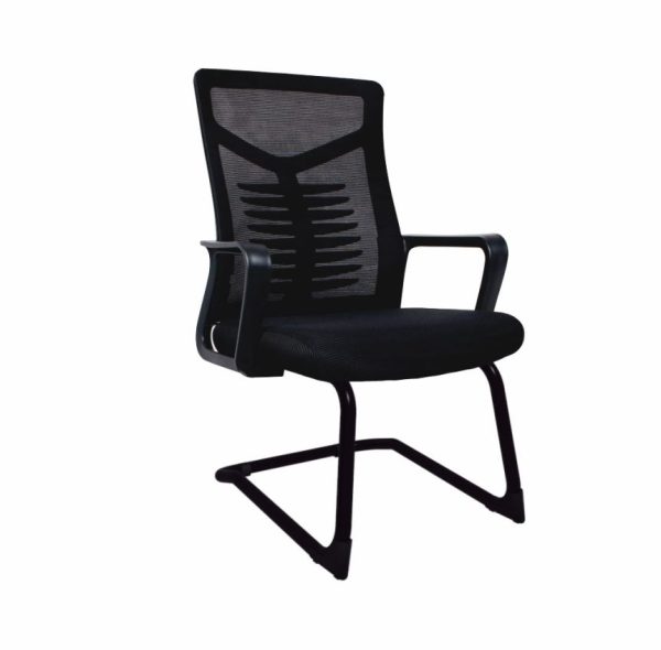 TRINEO PINTADO EN COLOR NEGRO, BRAZOS DE POLIPROPILENO, RESPALDO DE MALLA MESH, TELA IMPORT COLOR NEGRO